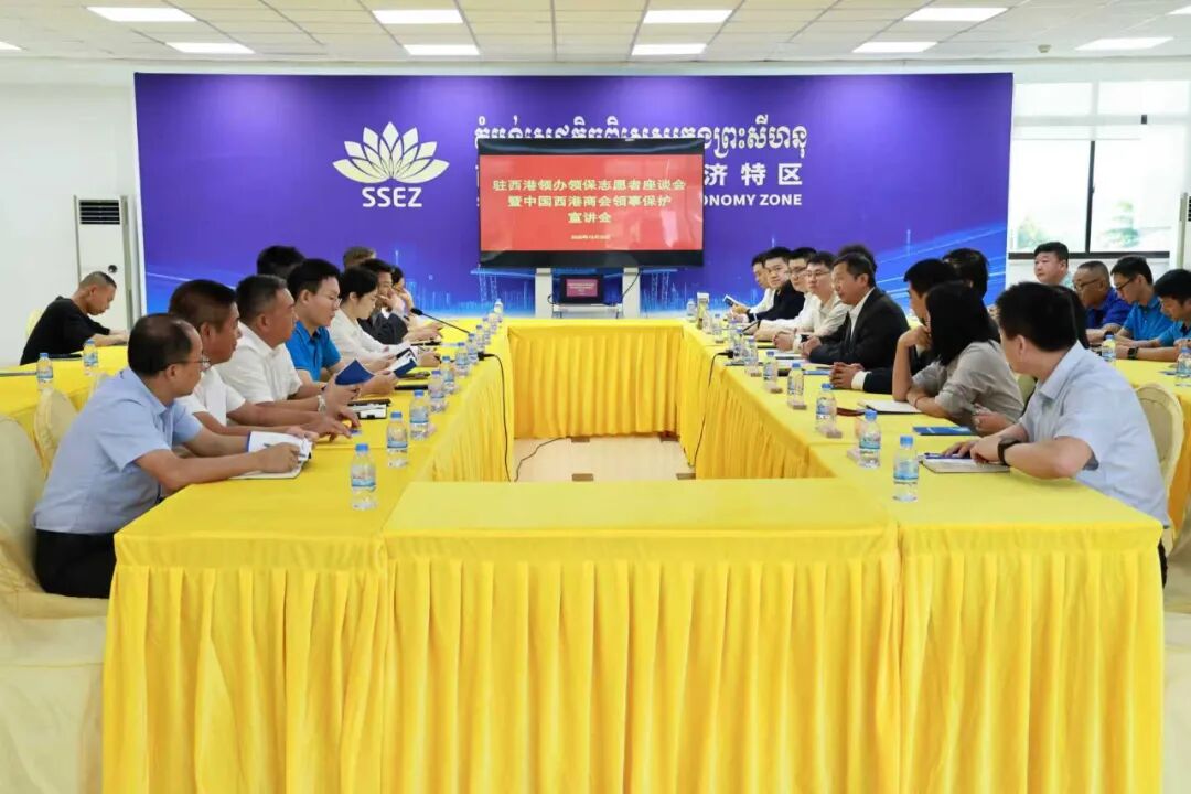 10月23日,中国驻柬埔寨大使馆驻西港领办领保志愿者座谈会暨西哈努克省中国商会领事保护宣讲会在西哈努克港经济特区内召开,来自西哈努克省中国商会的会长、副会长单位及区内部分中资企业代表参加会议,并现场领取了《中国领事保护与协助指南》手册。